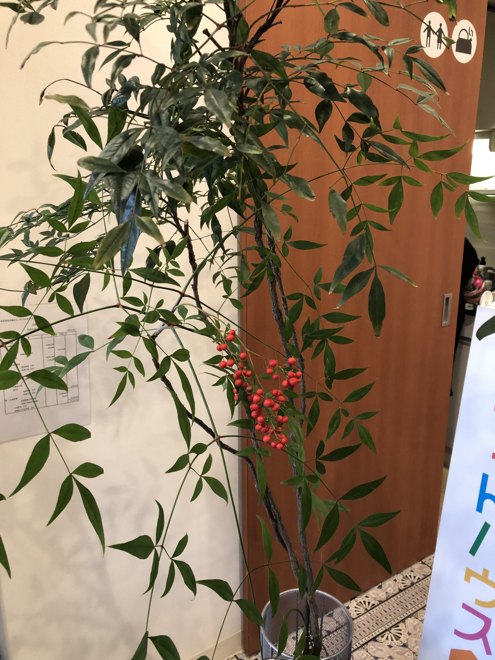 クリスマスのもみの木を持ってきてくださったご近所の方が今日はお庭から切ったという南天の木を持ってきてくださいました。