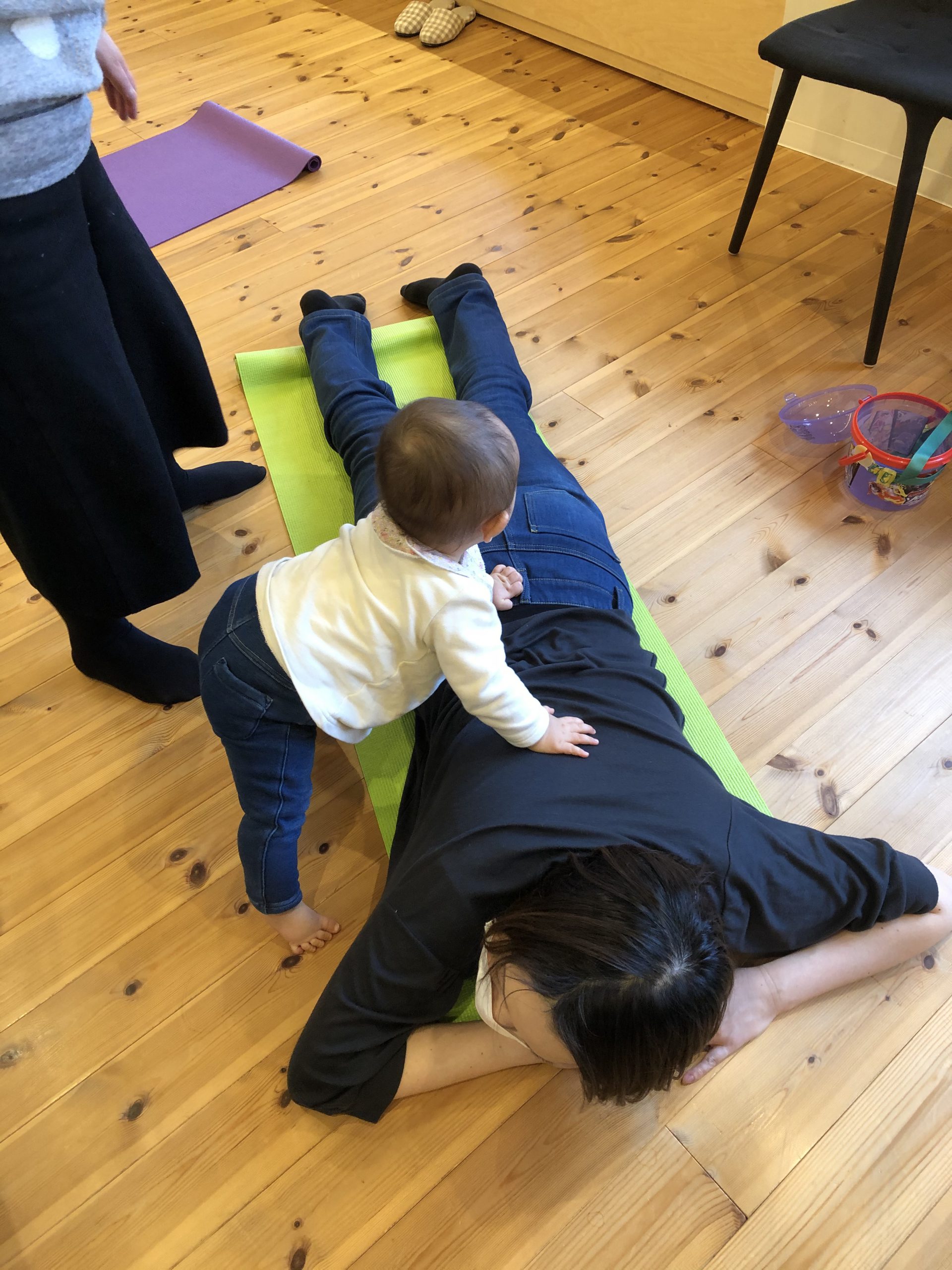 タイ式ヨガのルーシーダットンにもママと一緒に参加してくれました。ママもリフレッシュ!元ちゃんハウスは赤ちゃん連れでも大丈夫です。育児中の方もお越しください。