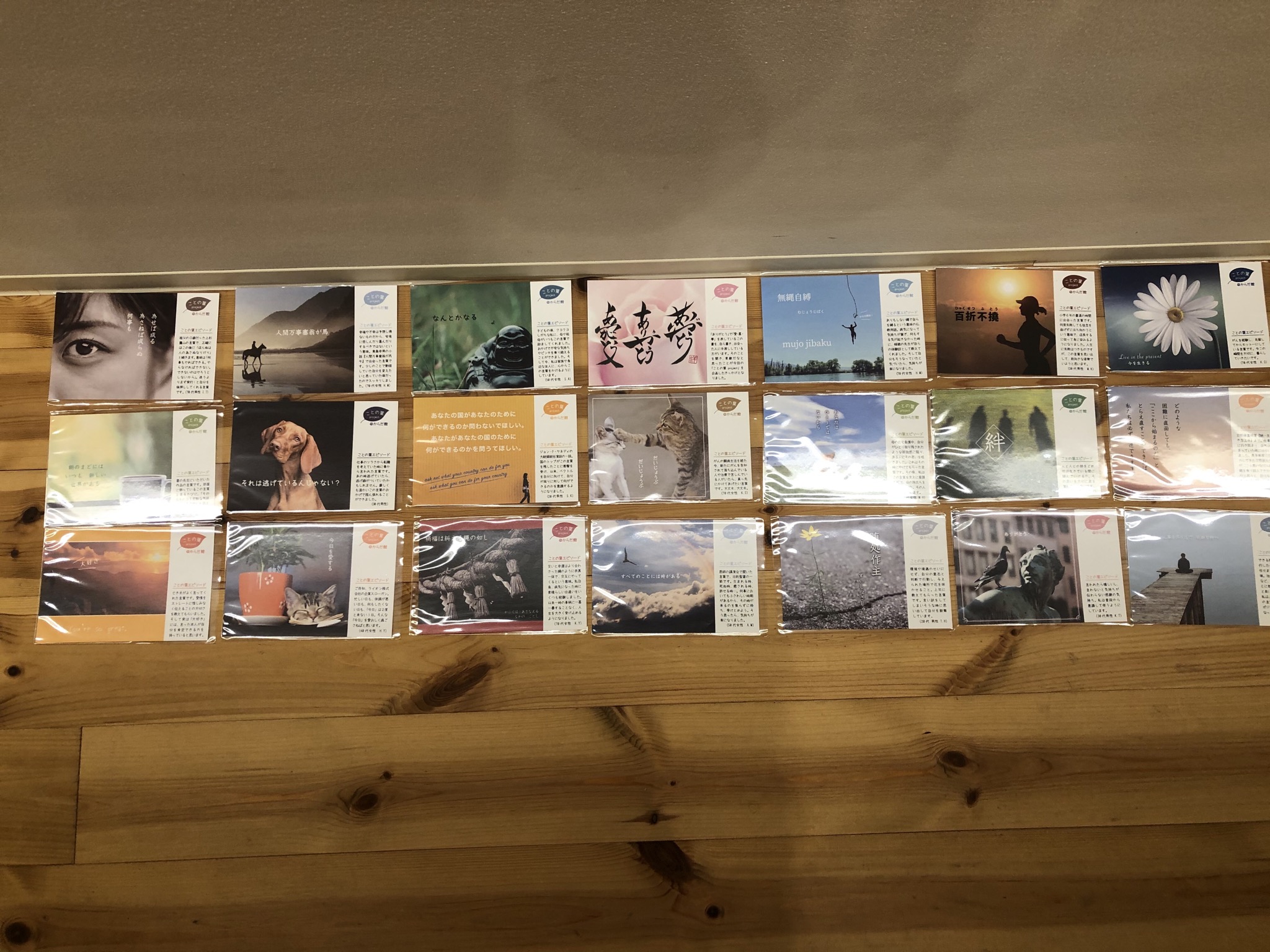 どの言葉もそれぞれ心打つ言葉です。素敵な写真と一緒になり素敵なポストカードになりました。http://karadakan.jp/kotonoha-project/index.html