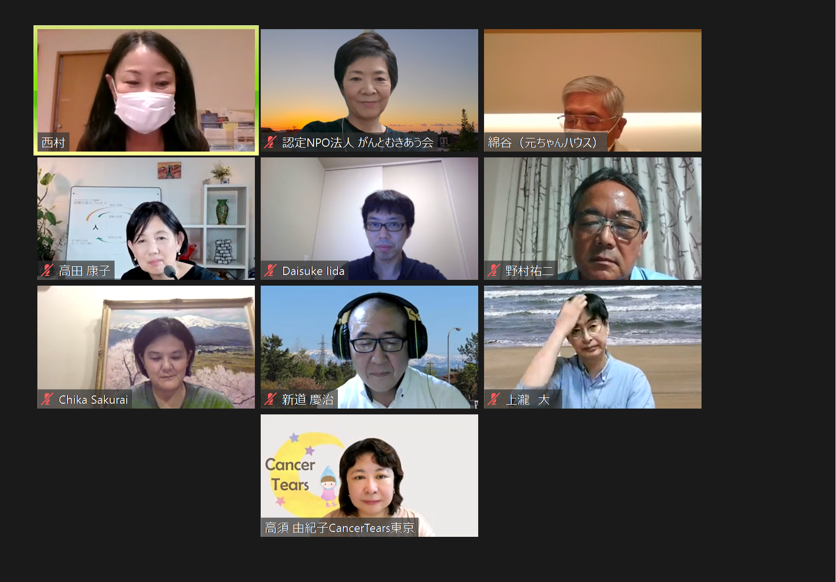 今日のナイト元ちゃんハウスも患者さん、企業の方、在宅医の先生、サバイバーの方で患者支援をされている方、元ちゃんハウススタッフでのおしゃべりでした。まずは、メンバーからの情報で、前理事長が闘病中、医学部1年生の学生さんに患者の声を届けたのですが、その学生さんが5年生になり緩和ケアの実習でそこからの学びを語ってくれたことが医学部同門会報に載っていたことを紹介してくれました。前理事長の想いが受け継がれることがうれしく、思い出して振り返りました。また、緩和ケア病棟って人生を終える人だけの場所じゃないの?との問いがあり、在宅の先生からの事例紹介や地域の差なども話しました。また、ナイト元ちゃんハウスで繋がった方が、また他の患者支援の方と繋がって実際に活動されている事を聞いて嬉しかったです。以前、元ちゃんハウスのFBでも紹介した「血液疾患コミュニティemaremo」さんのセミナーに協力されたCancerTearsさまから講演の様子もお聞きして、行動活性化療法(認知行動療法のひとつ)を知りました。みんな興味深々でした。社労士の方からは看護師さんの欝傾向が多いとか、患者さんの貧困などコロナ禍での現実を聞きました。今日は参加者どおしがセミナーや学びについての沢山の情報交換が出来ました。お互いが高め合える場になれたらうれしいです。次回は12月1日です。