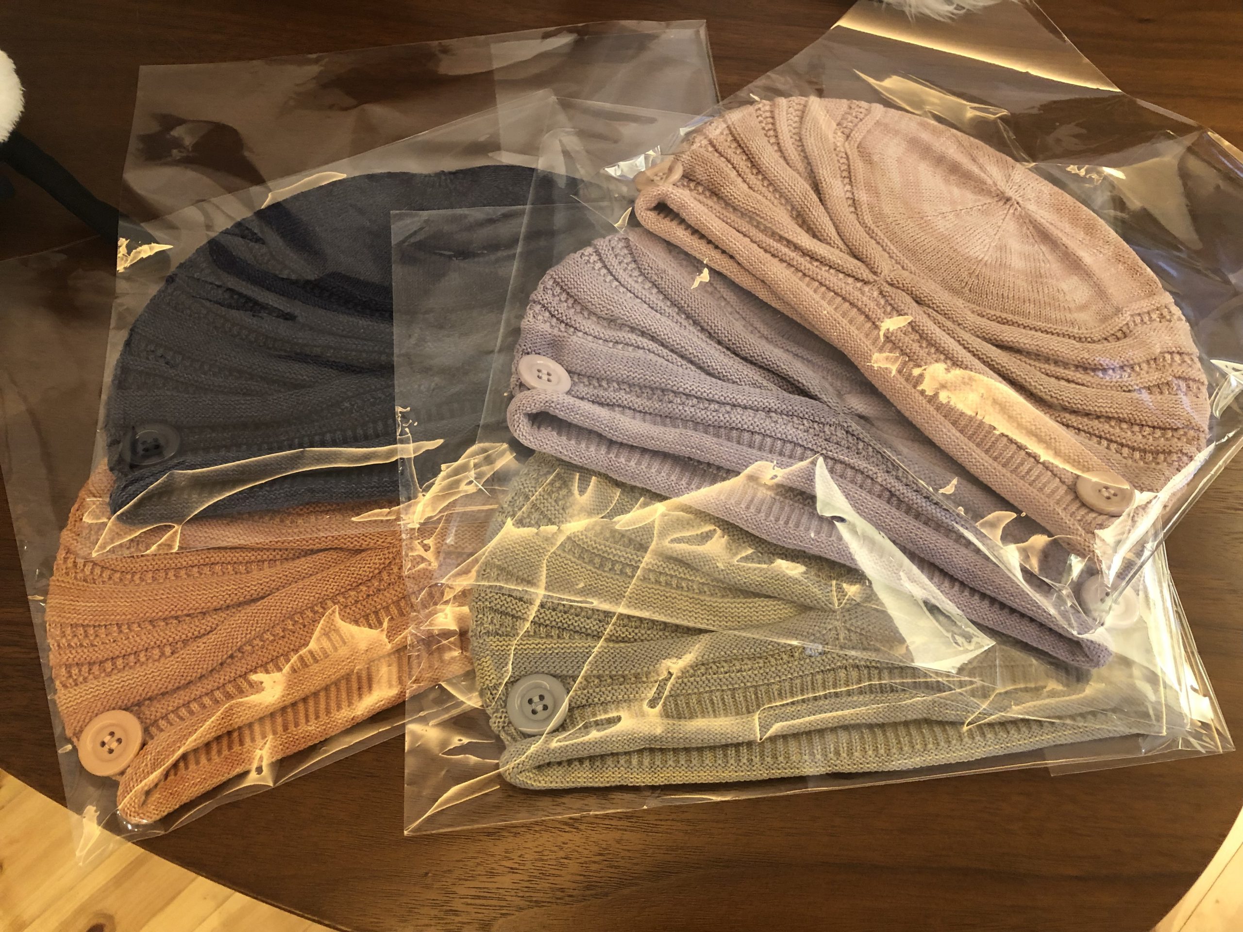 アフラックさんの保険販売代理店「トータル保険サービス」では、がんのご経験者向けのニット帽を制作して、ご希望の患者会様等に寄贈