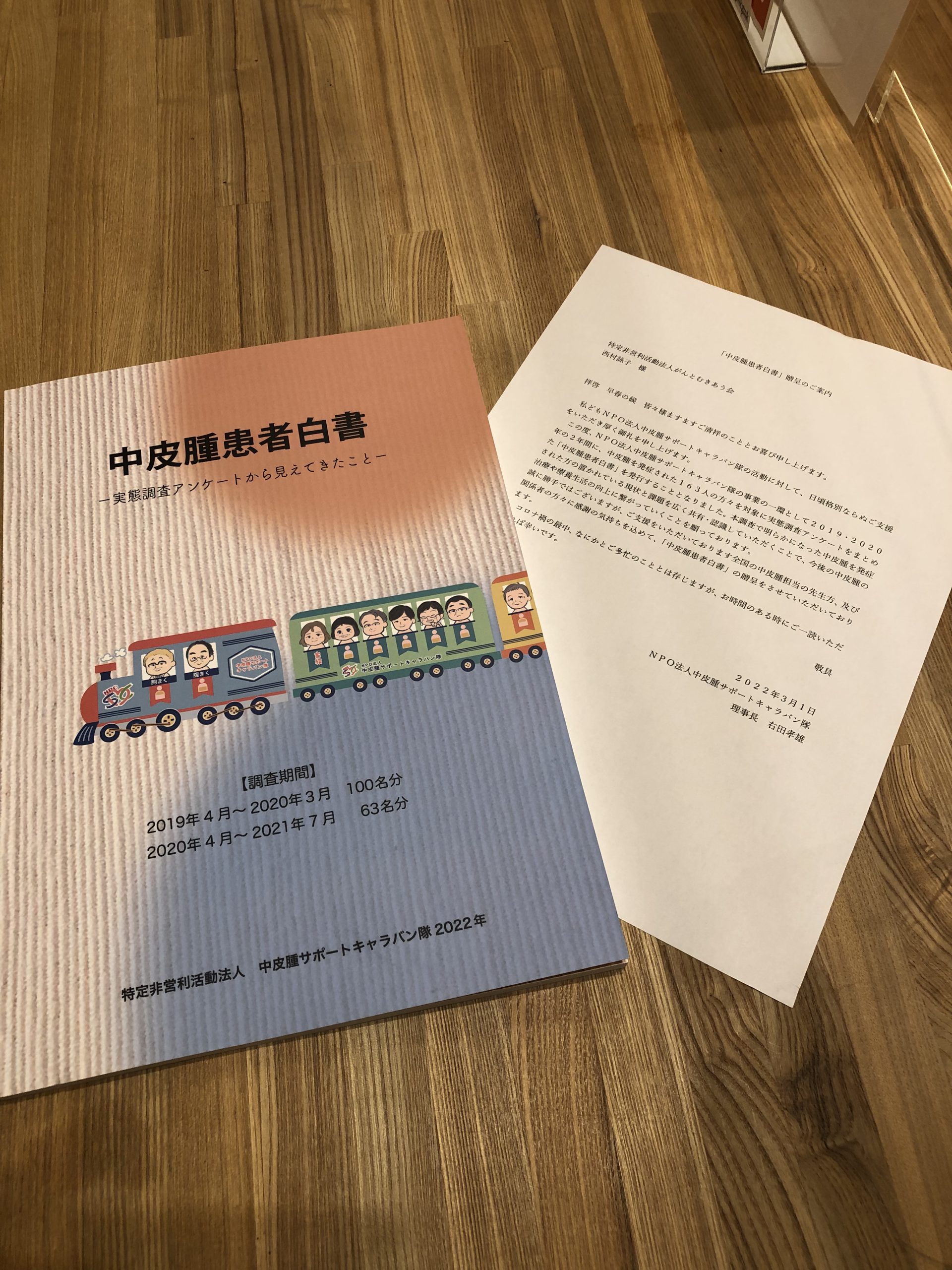 元ちゃんハウスにも来てくださったこともある、NPO法人中皮腫サポートキャラバン隊さまから、中皮腫患者白書が届きました。患者さん達のお声を知ることによって、今後の治療や療養生活の向上につながる一助になれればと思います。
