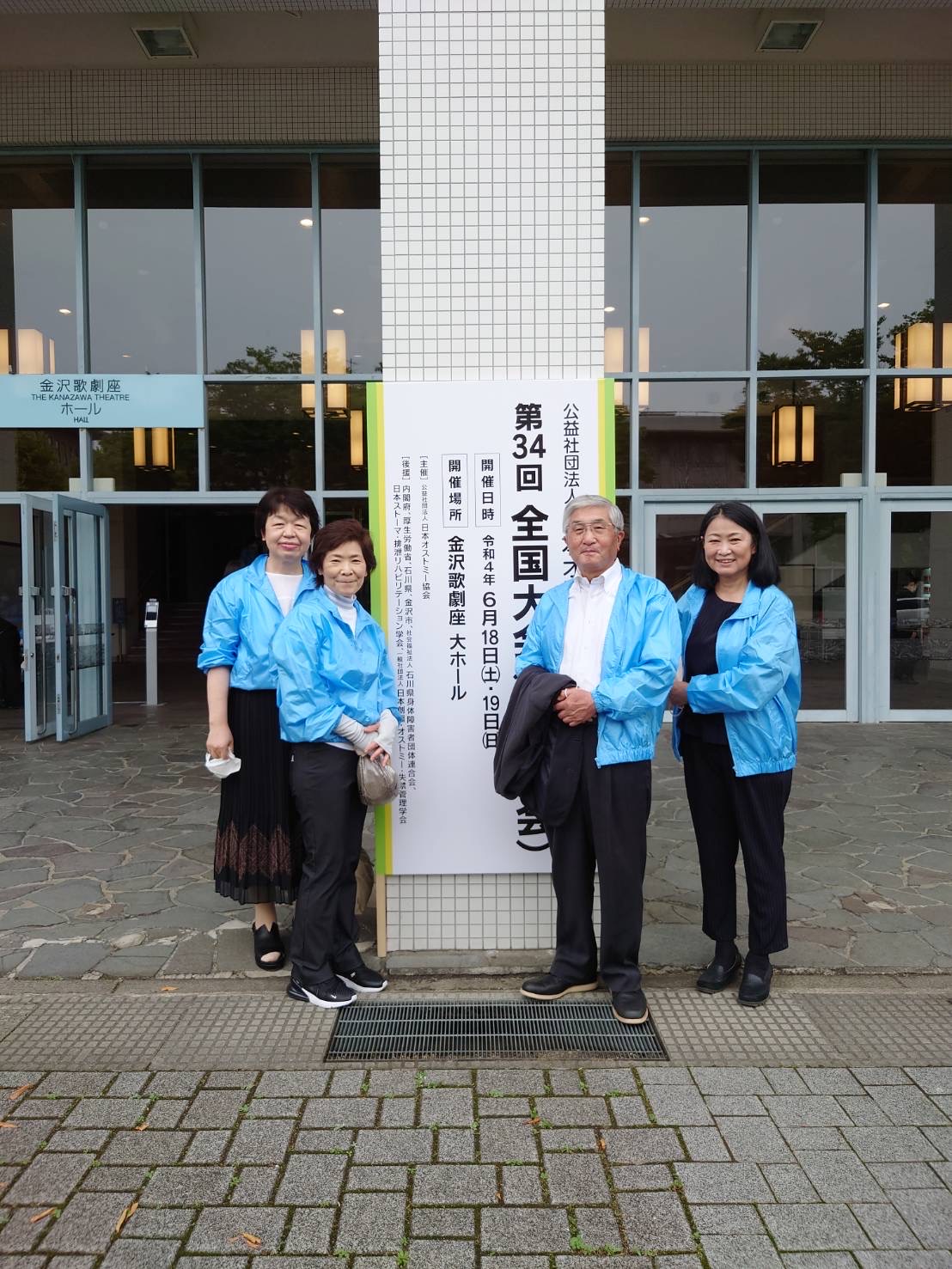 今日と明日は公益社団応身日本オストミー協会の第34回全国大会(石川大会)が金沢歌劇座で開催されます。コロナか感染で3年ぶりの開催だそうです。今日は式典や総会、講演会があり馳県知事や村山市長もご列席されました。全国からオストメイトの方達がお越しになられていました。石川支部のみなさまにはいつもお世話になっていますので、元ちゃんハウスから4名、お手伝いに参加させていただきました。馳石川県知事や村山金沢市長もご列席されていました。蒸し暑い日でしたがボランティアのお揃いの水色のジャンパーで頑張りました!明日の午後は元ちゃんハウスが会場となり若いオストメイト交流会が開催されます。