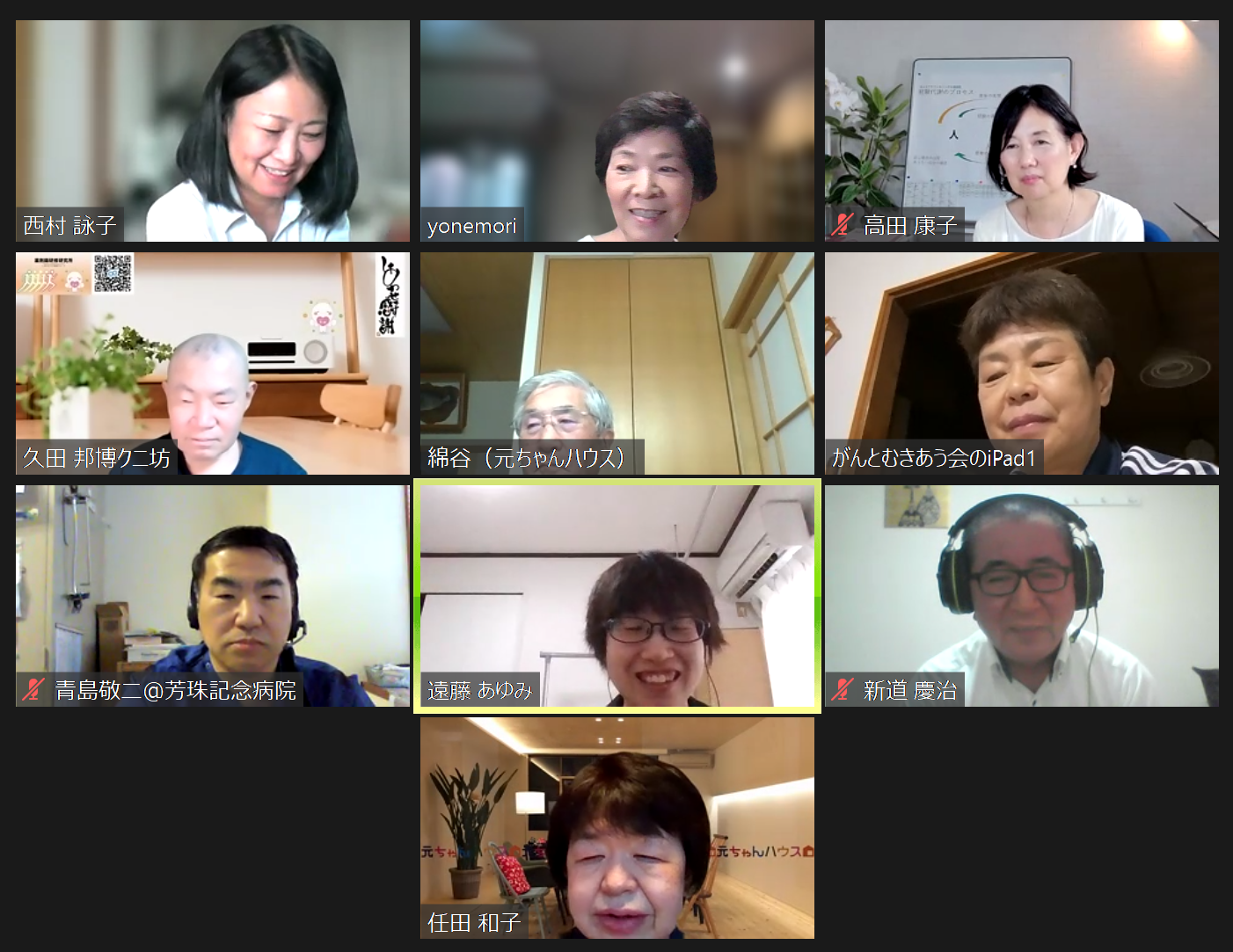 参加者からの質問やご意見、参加された医師からのアドバイスで今日は、まなびの多い時間となりました。タバコと肺癌の関係や、年齢別の乳がん罹患、食事とがんの発症など、がんについての色々なデータや情報がたくさんあります。そのデータ自体は正しくても、グラフの見方や、解釈の仕方が違っていることもあるし、まだ、はっきりと医学的エビデンスが出ていないこともあります。大切なのは、これは本当に正しいのか?と一度、考えること、わからなければ聞いてみるということだと思います。また、ずっと治療を続けている患者さんも体調や、病気の事を気にするとそれは当然、いろいろあるけれど、気にしないようにしたり、心の持ち方を工夫すしていると教えてくれました。改めて、みんな頑張っているんだよねえと思います。だから元ちゃんハウスは皆さんを応援したいなあと思います。最後は参加した学会からのまなびや、これから開催されるフォーラムのお知らせ、参加する予定など情報の交換をしました。毎月第一水曜日です。来月はどんなお話が出るか楽しみです。