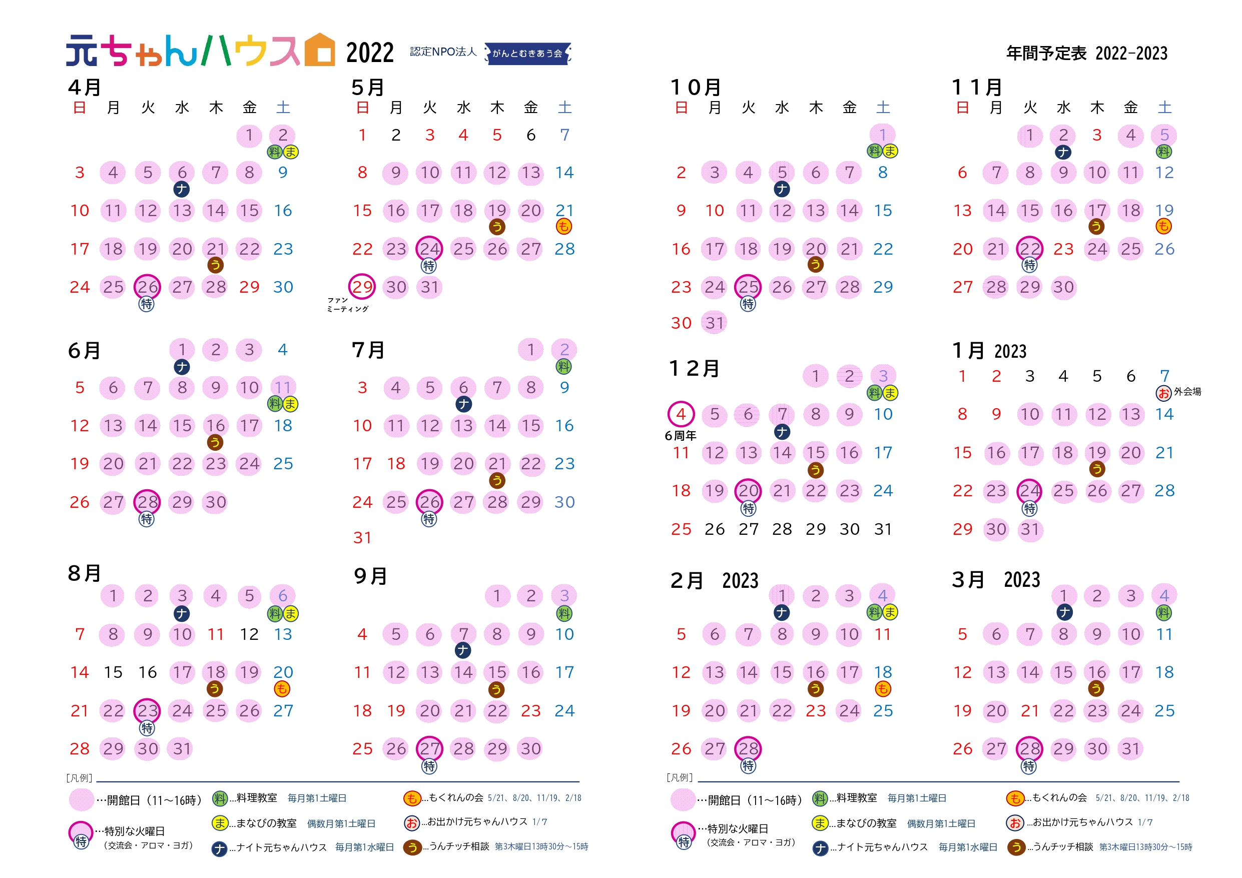 今年度の、年間カレンダーと年間プログラムです。