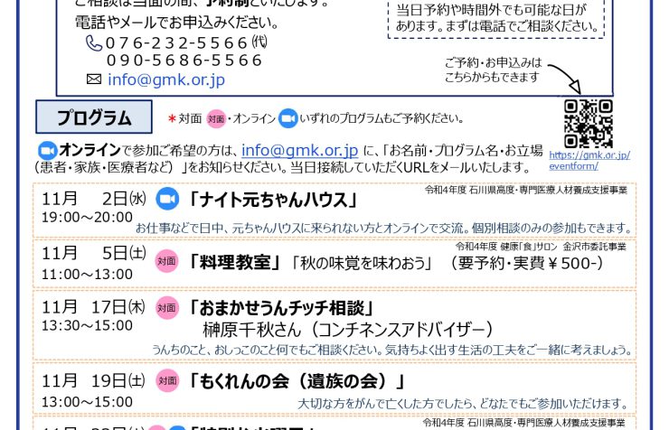 11月の元ちゃんハウスプログラム