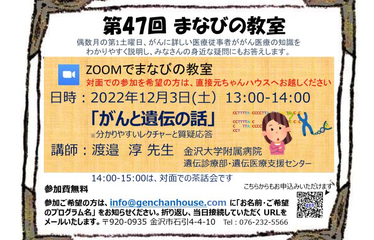 6月18日第46回金沢がん哲学外来【オンライン】