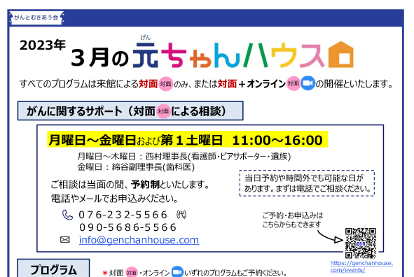 3月の元ちゃんハウスプログラム
