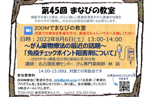 コロナウイルス感染が落ち着くまでの当分の間は、対面のご参加も事前のご連絡をお願いします。