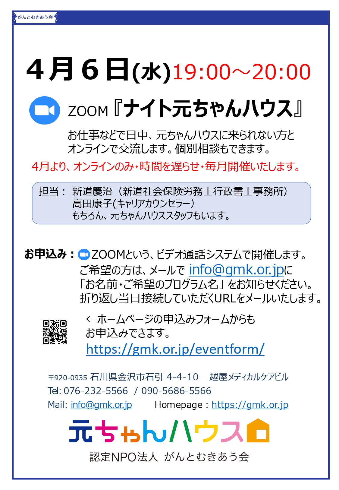 お仕事などで日中元ちゃんハウスに来れない方、是非お気軽にご参加下さい。