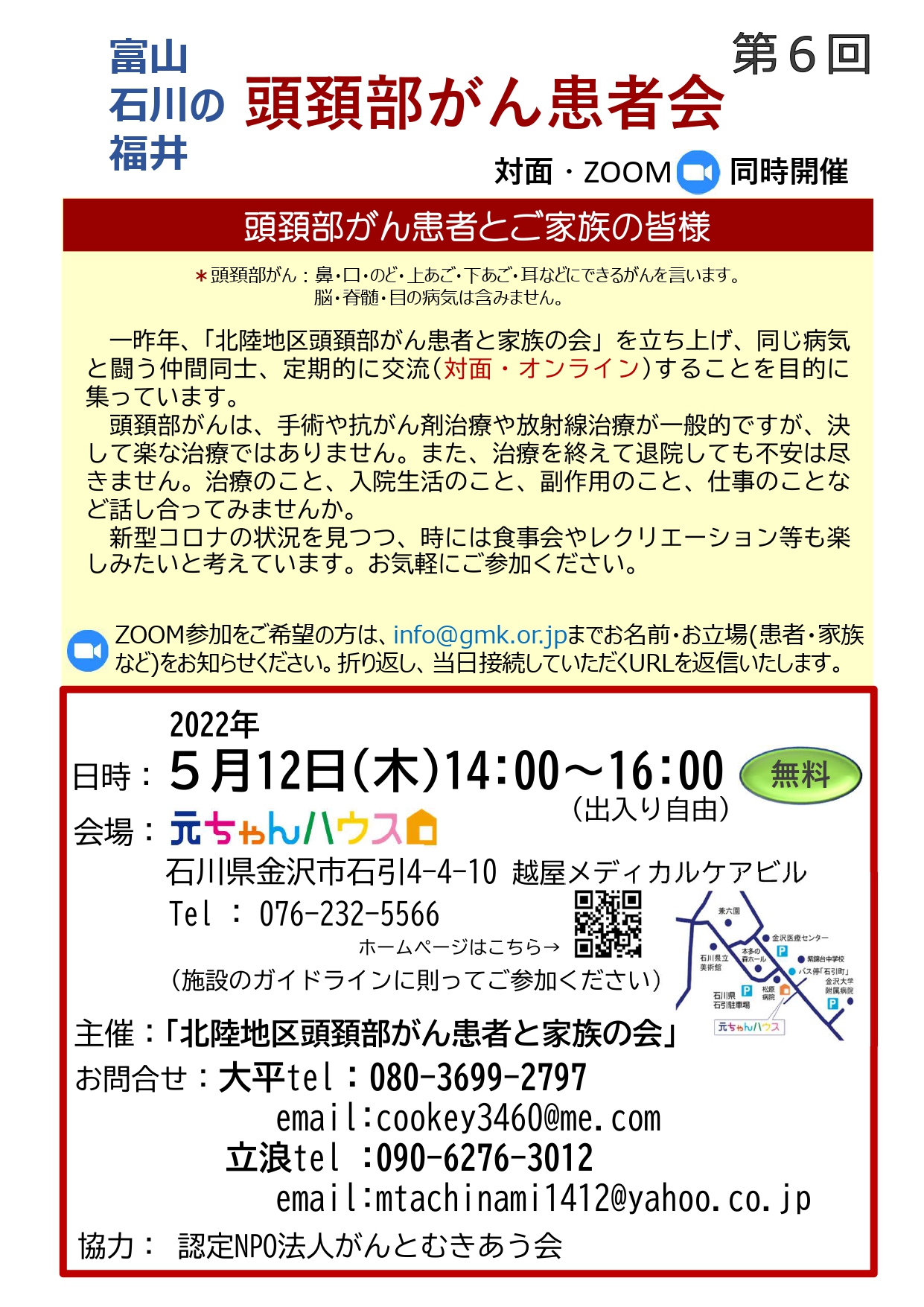 3. 【終了】5月12日第6回頭頚部がん患者会開催