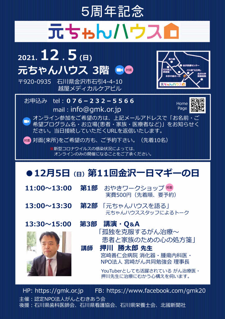 場所:元ちゃんハウス(金沢市石引4-4-10)およびZOOMオンライン