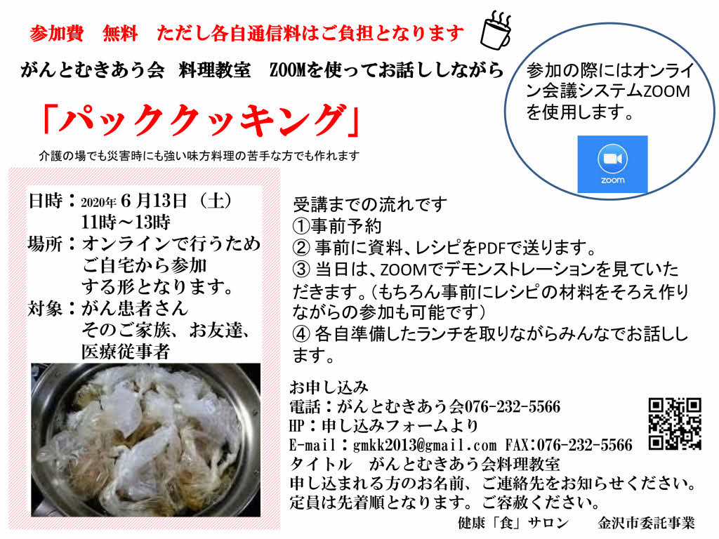 6月の料理教室は、ZOOMを利用したオンライン料理教室「パッククッキング」です。