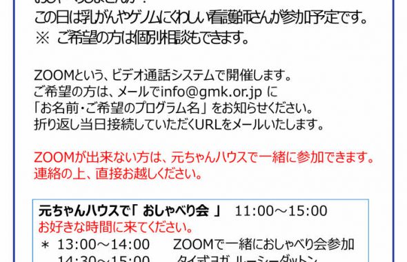 - 会場:ZOOMを利用した、ご自宅からのオンライン参加になります。