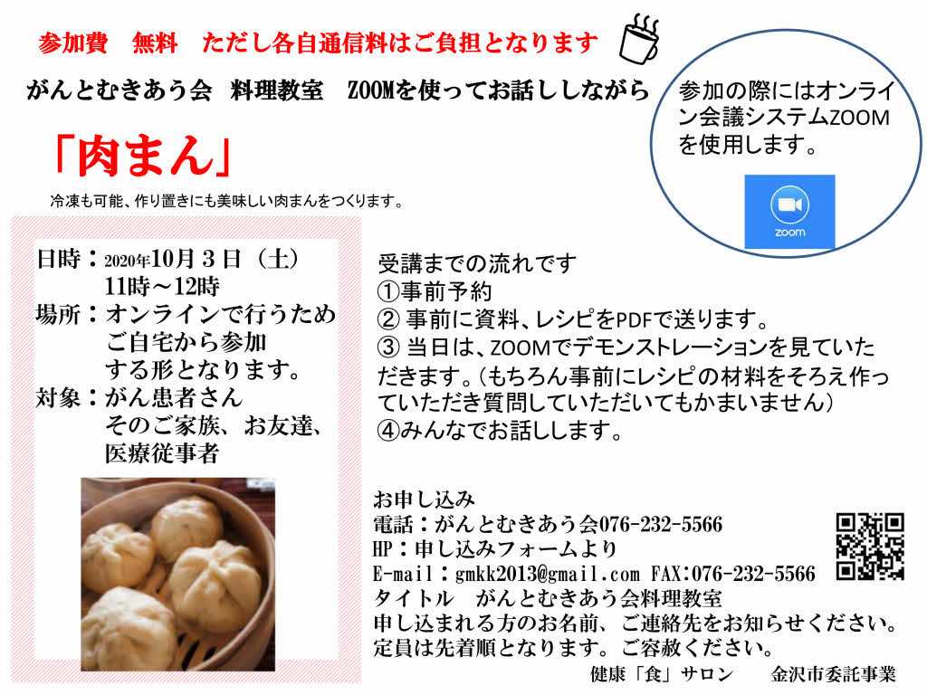 10月の料理教室は、ZOOMを利用したオンライン料理教室「肉まん」です。