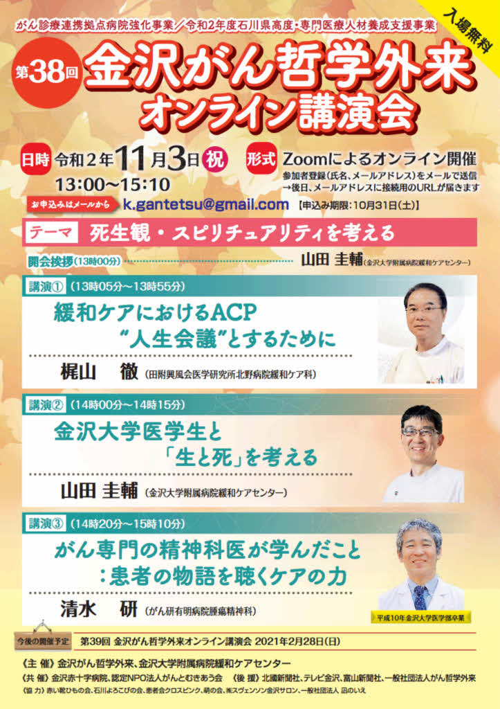3. 【終了】11月3日第38回金沢がん哲学外来【オンライン】