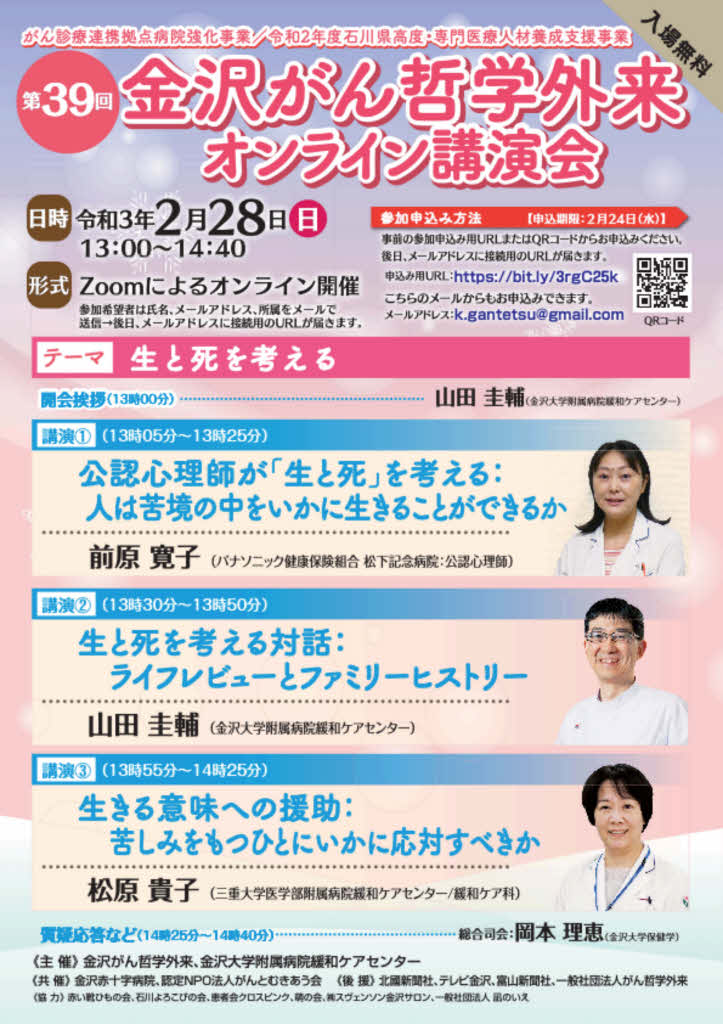 3. 【終了】2月28日第39回金沢がん哲学外来【オンライン】