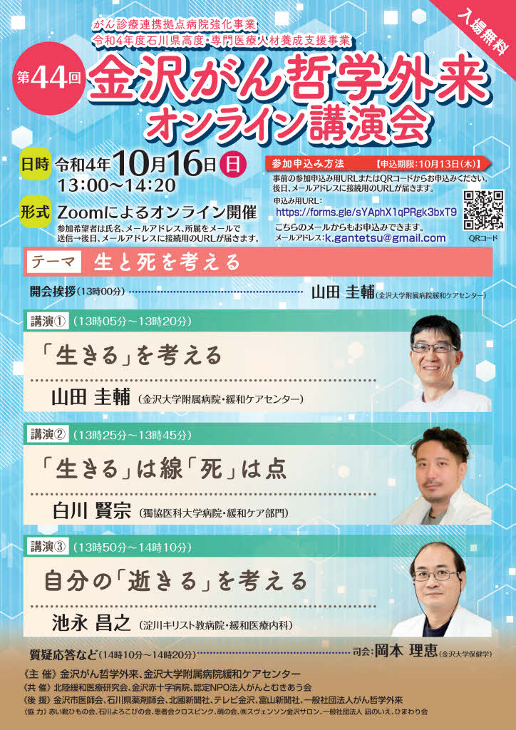 詳細は、金沢がん哲学外来のWEBサイトをご覧ください。