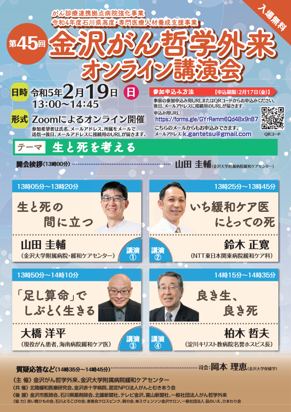 2月19日第45回金沢がん哲学外来【オンライン】