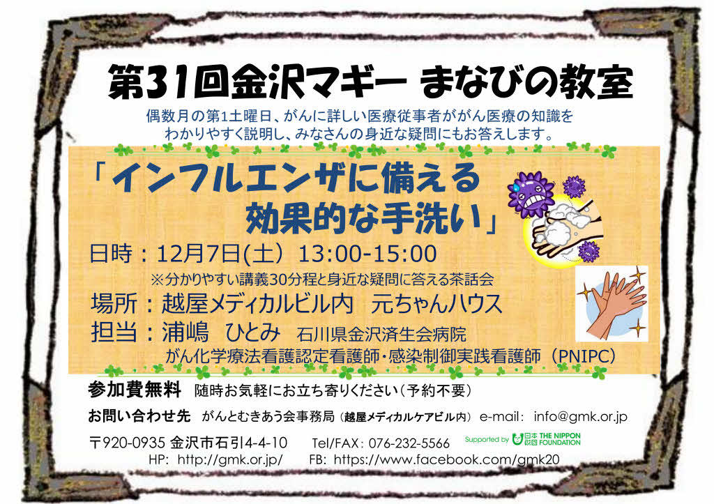 【終了】12月7日第31回金沢マギーまなびの教室