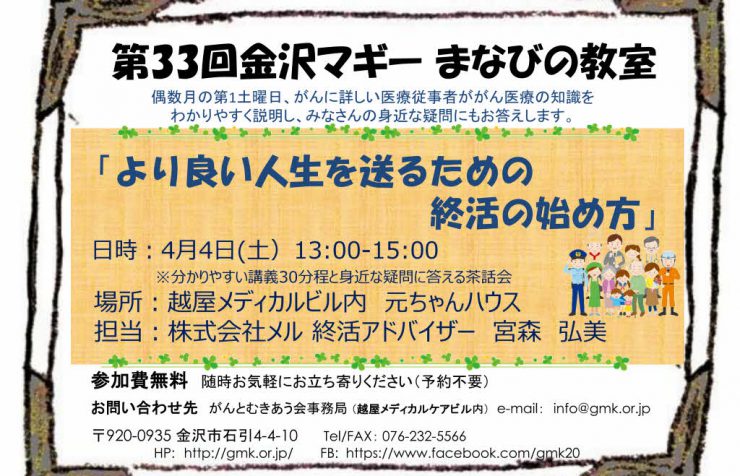 【中止】2月23日ときどきマギー・第36回金沢がん哲学外...