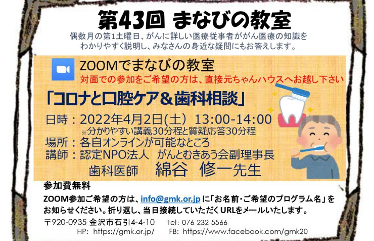 【終了】令和4年2月27日第42回金沢がん哲学外来【オン...