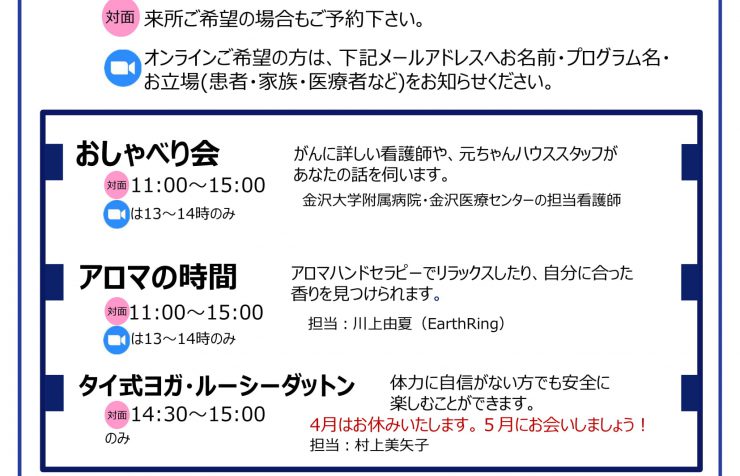 5月の元ちゃんハウスプログラム