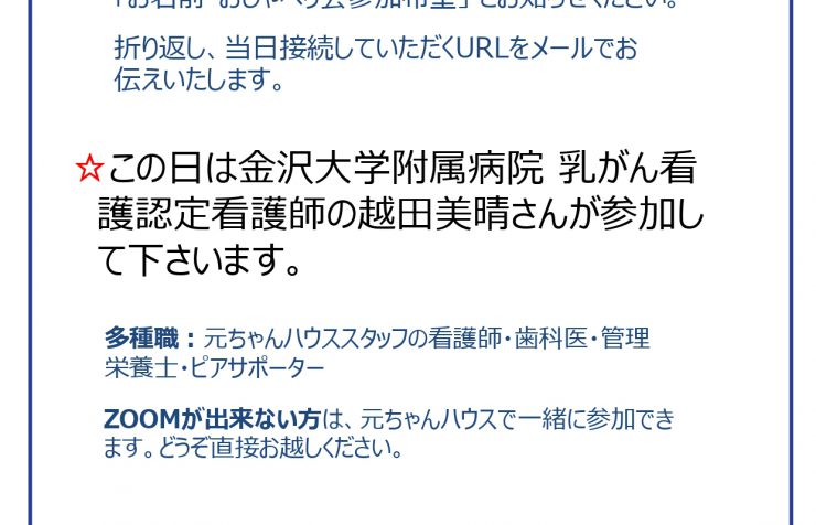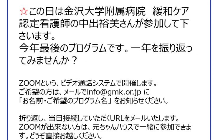 【終了】2月28日第39回金沢がん哲学外来【オンライン】