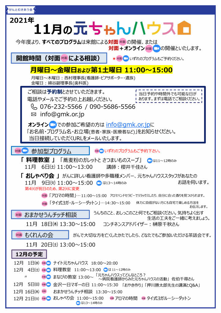 11月の元ちゃんハウスプログラム(PDFファイル526KB)