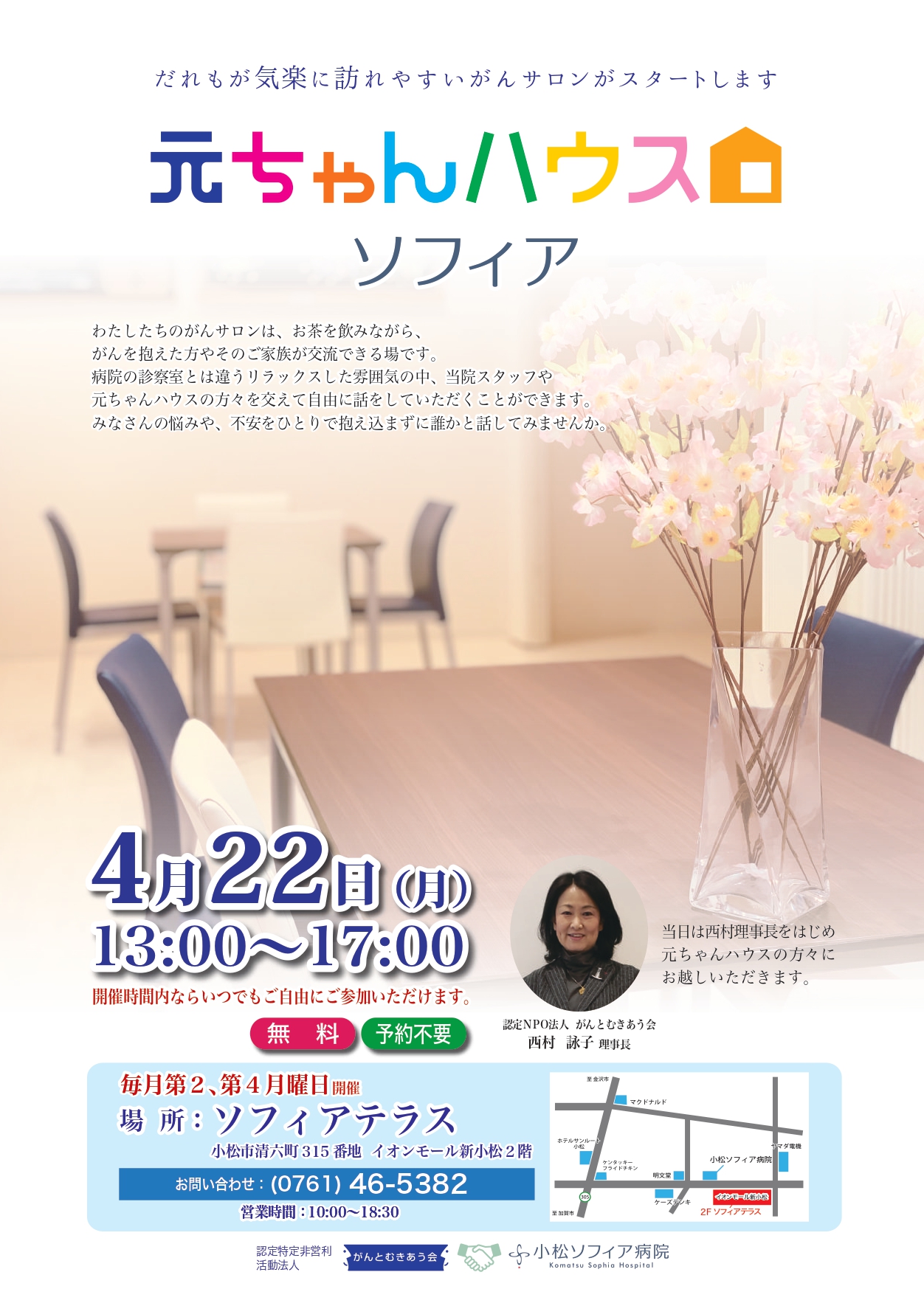 認定NPO法人がんとむきあう会は、医療法人社団愛康会小松ソフィア病院と、