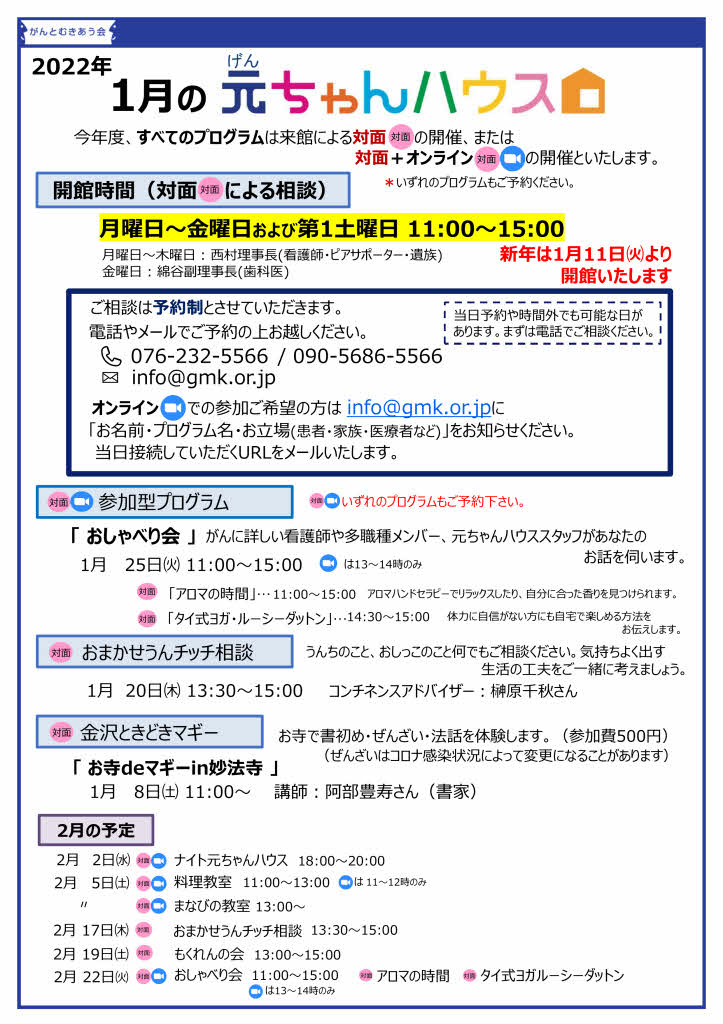おしゃべり会は元ちゃんハウスでの対面およびオンラインにて開催します。