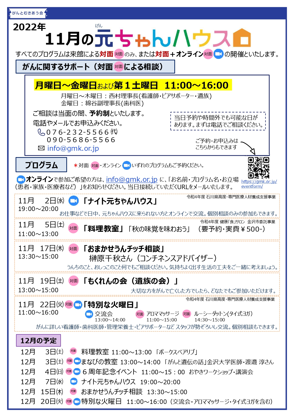 元ちゃんハウス11月の開催予定です。