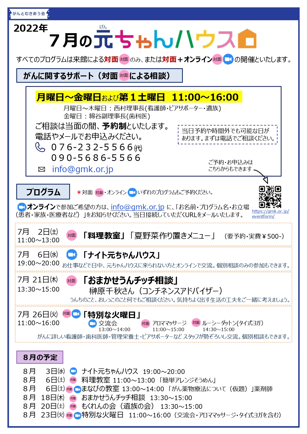 https://gmk.or.jp/wp-content/uploads/2022/06/20227月号予定表.pdf元ちゃんハウス7月開催予定